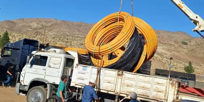 Este martes arribaron camiones con la cañería que se usará para la ejecución de la obra de gas natural
